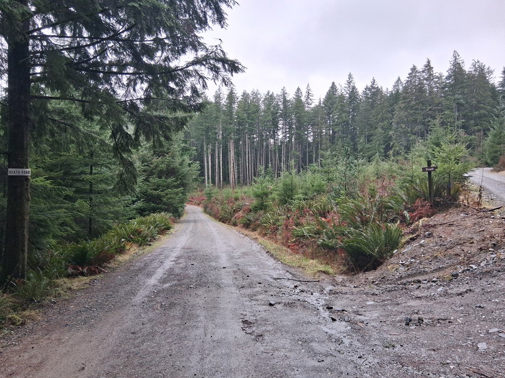 (2) The alternative and shorter trail access to Maude Island can be found if you drive along the Walcan Road and go past the Morte Lake car-park and then continue on past Mud Lake on the right, and after a kilomtetre or so turn right down the first logging road on the right (signposted as Q80), which turns off the main road opposite Sorenson large quarry and begins to go downhill. Continue driving down this logging road until you come to a side road on your right which is sign-posted HEATH ROAD, at GPS point N50°, 7.879′, W125°, 19.280′.